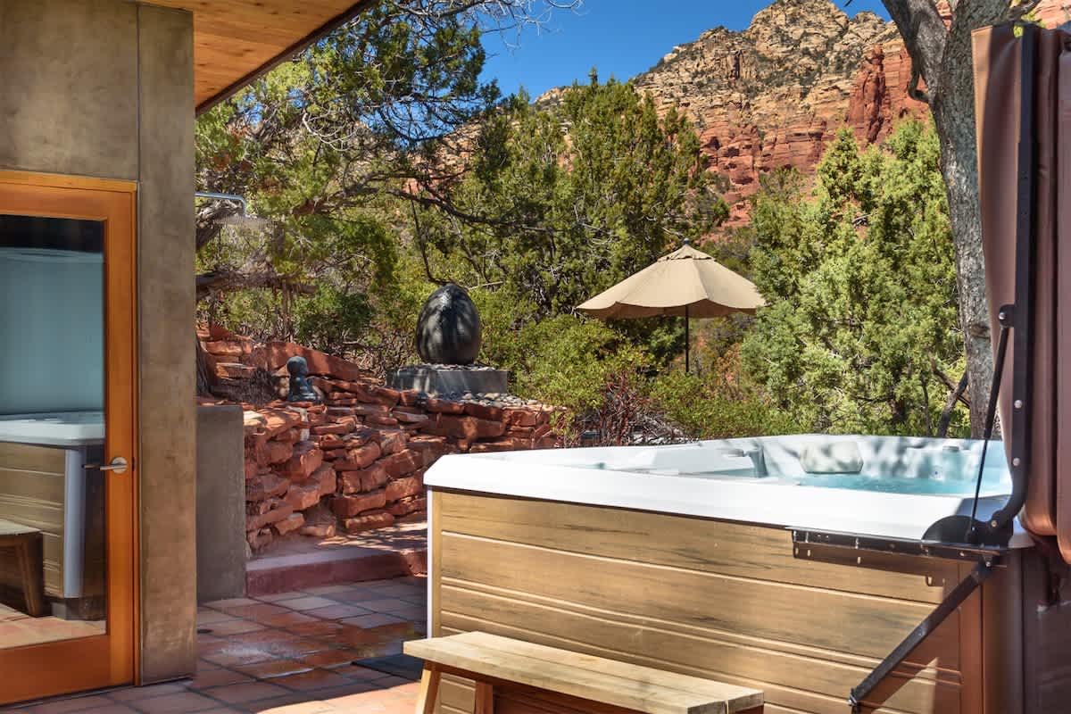 Casa Amor is designed for an elevated, tranquil stay, offering the most stunning views in Sedona. Defined by striking architecture, thoughtful design & effortless comfort, it features a chef’s kitchen & soaking bathtub, along with a private floating balcony overlooking the red rocks. Enjoy Complimentary Access: *Eucalyptus-infused steam room+cedar dry sauna *Saltwater pool+hydrotherapy hot tub *Serene spaces for yoga/meditation *Gated grounds w/ peaceful walking paths *15+ private hiking trails