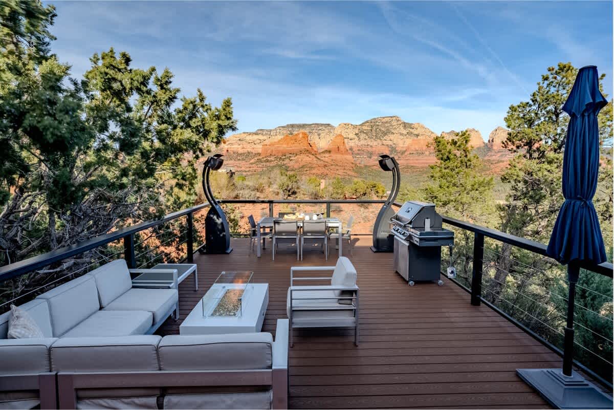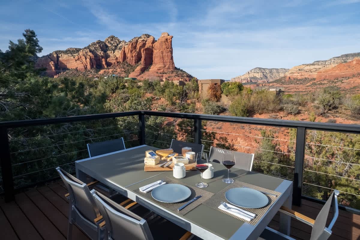 Casa Amor is designed for an elevated, tranquil stay, offering the most stunning views in Sedona. Defined by striking architecture, thoughtful design & effortless comfort, it features a chef’s kitchen & soaking bathtub, along with a private floating balcony overlooking the red rocks.