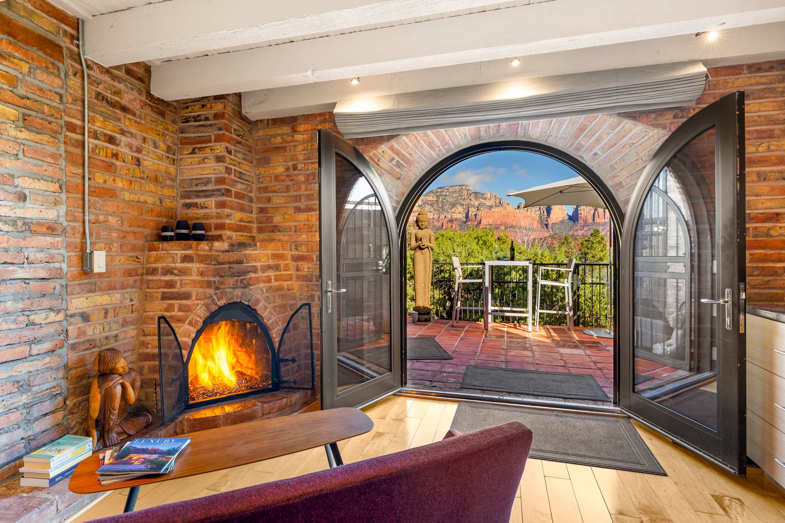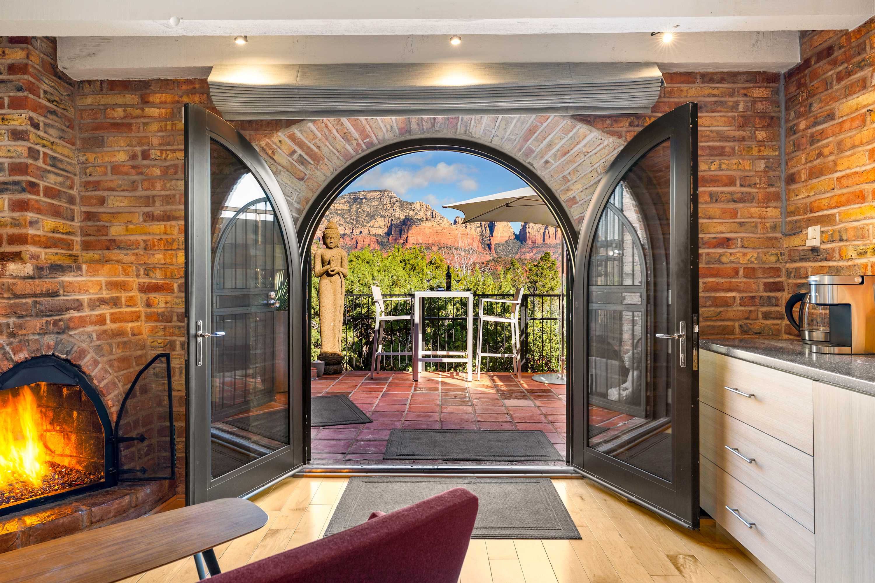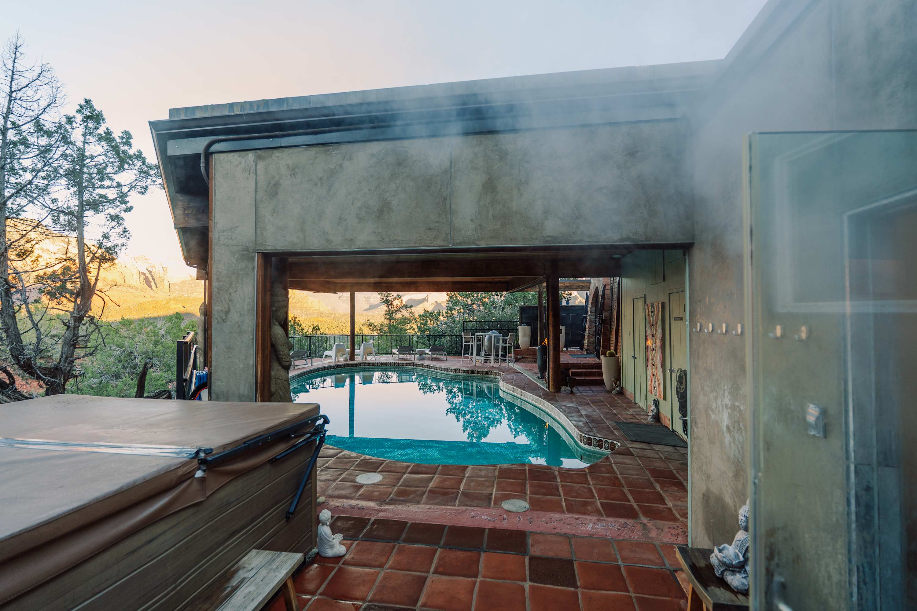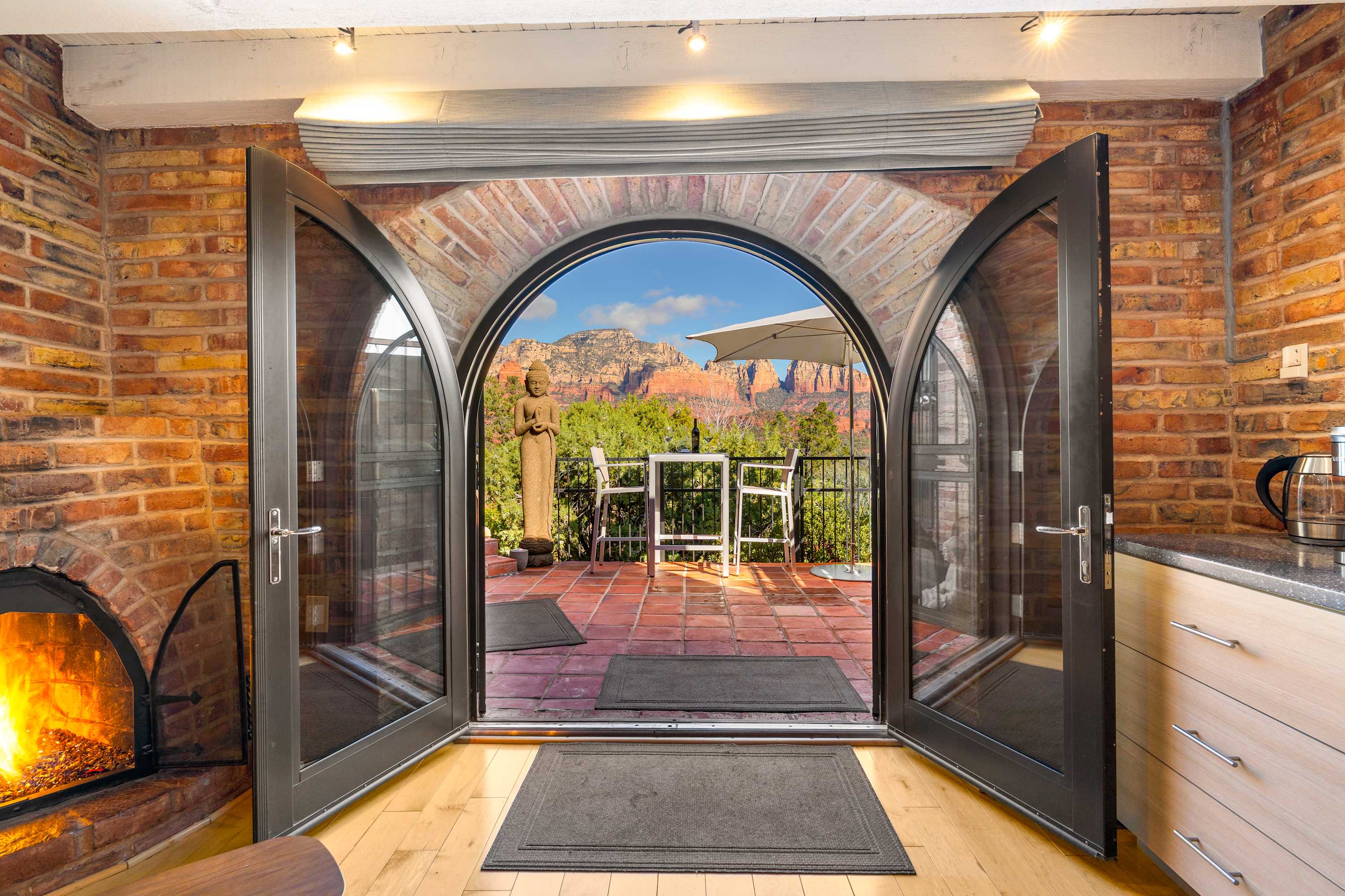 Experience The Guest Suite at Eagle Dancer as your own secluded wellness retreat. Cozy up beside the original kiva fireplace, or step out onto your patio to take in the sweeping red rock views, whether it’s a quiet sunrise or a soft desert evening settling in around you. Enjoy Complimentary Access To: *Eucalyptus-infused steam room & cedar dry sauna *Saltwater pool & hydrotherapy hot tub *Serene spaces for yoga, meditation *Gated grounds w/ peaceful walking paths *15+ private hiking trails