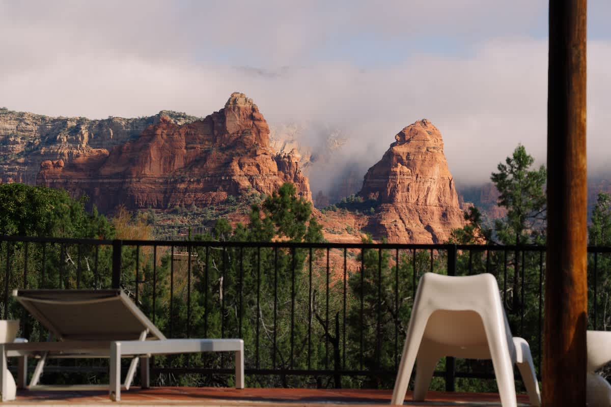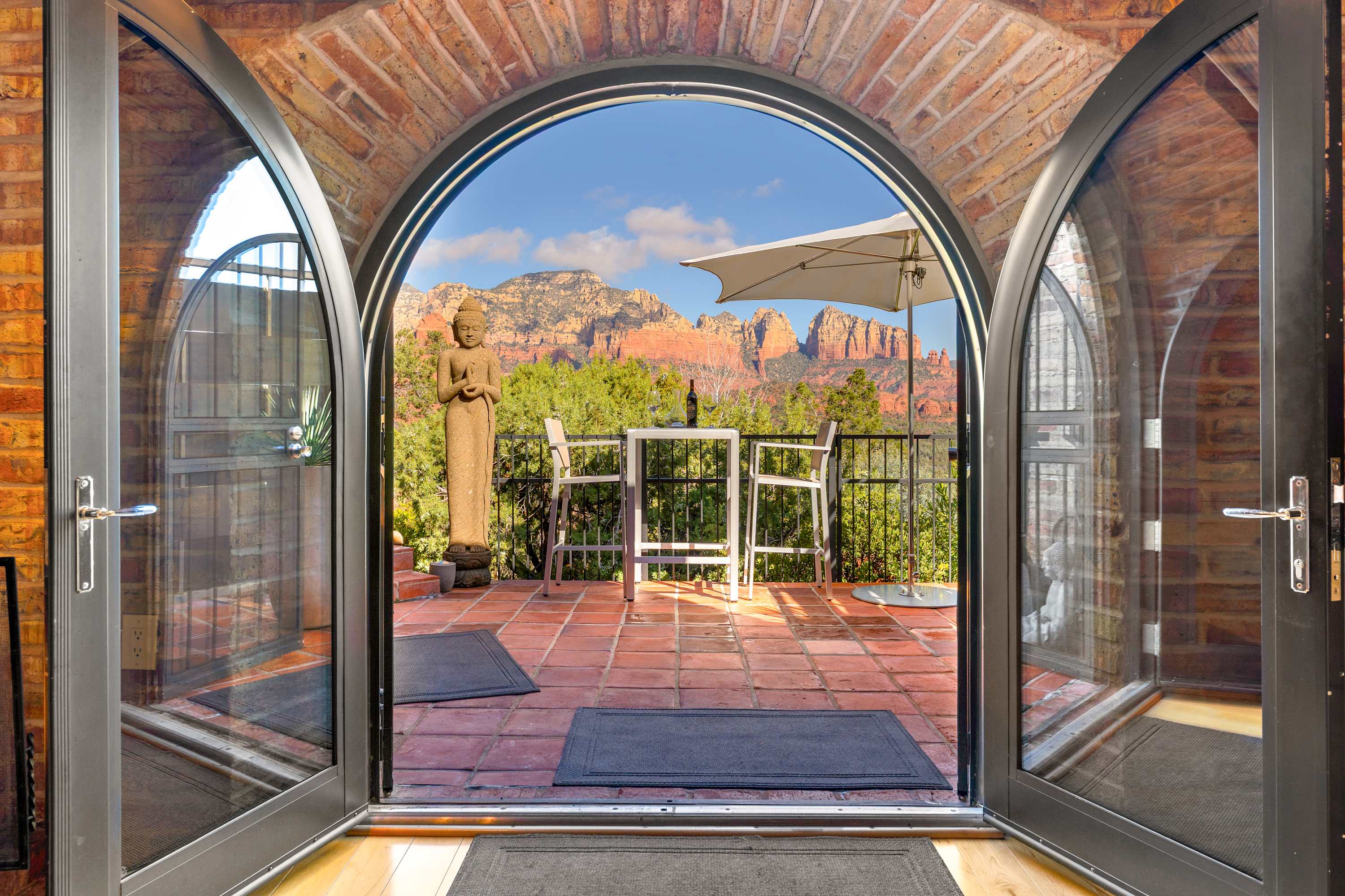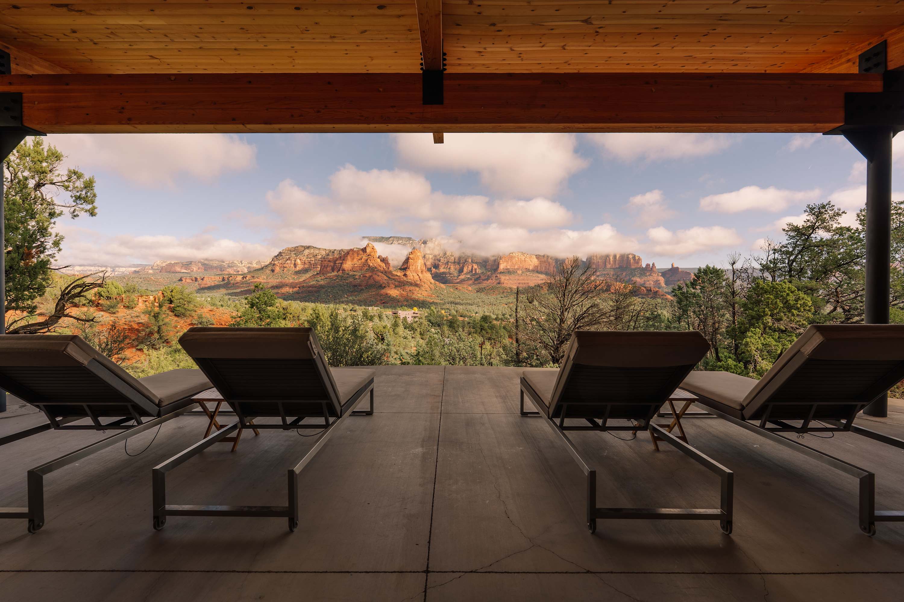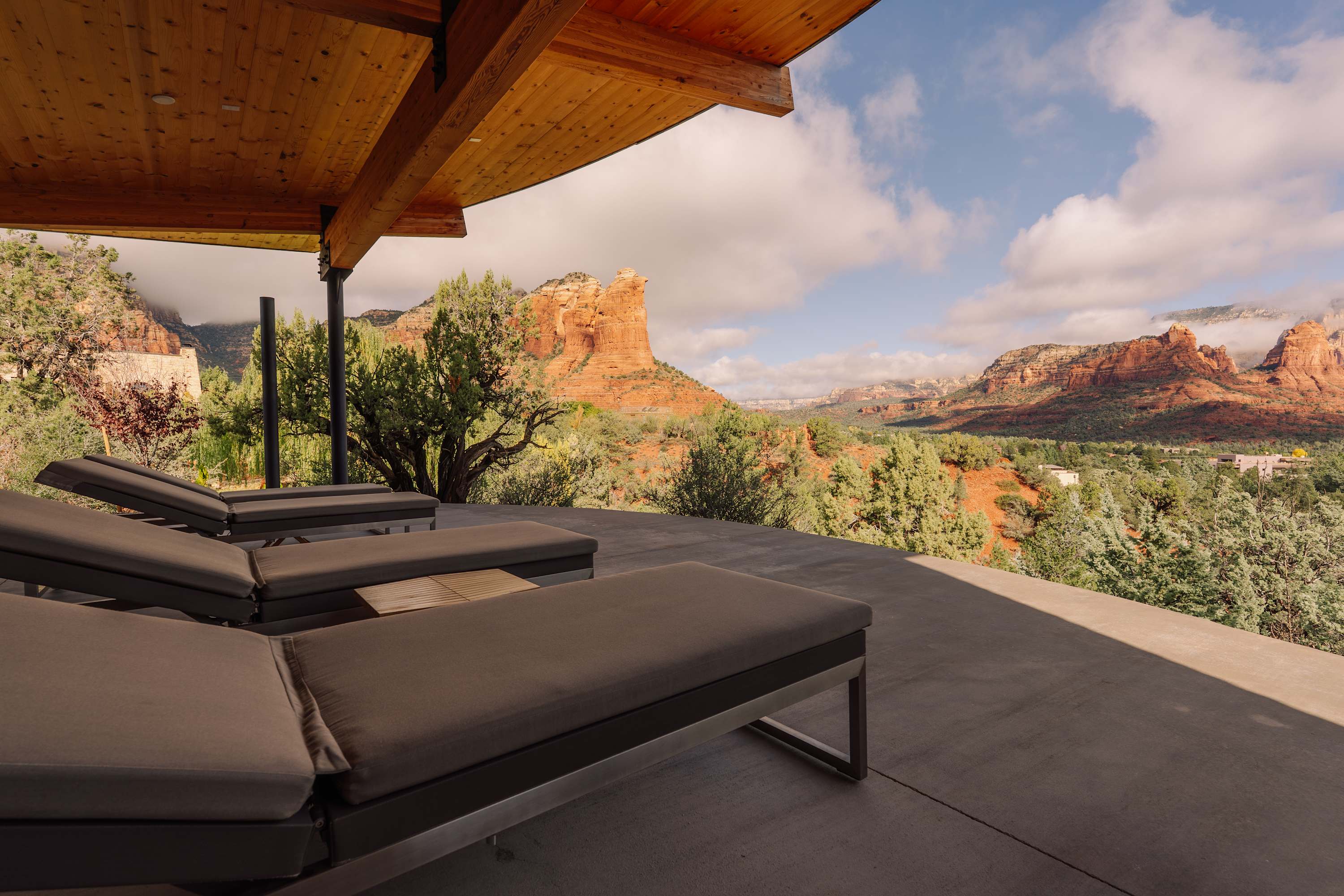 Experience The Guest Suite at Eagle Dancer as your own secluded wellness retreat. Cozy up beside the original kiva fireplace, or step out onto your patio to take in the sweeping red rock views, whether it’s a quiet sunrise or a soft desert evening settling in around you. Enjoy Complimentary Access To: *Eucalyptus-infused steam room & cedar dry sauna *Saltwater pool & hydrotherapy hot tub *Serene spaces for yoga, meditation *Gated grounds w/ peaceful walking paths *15+ private hiking trails