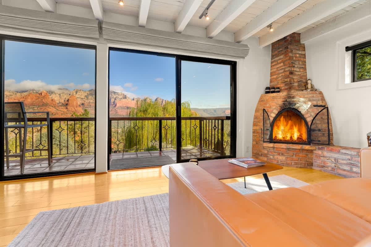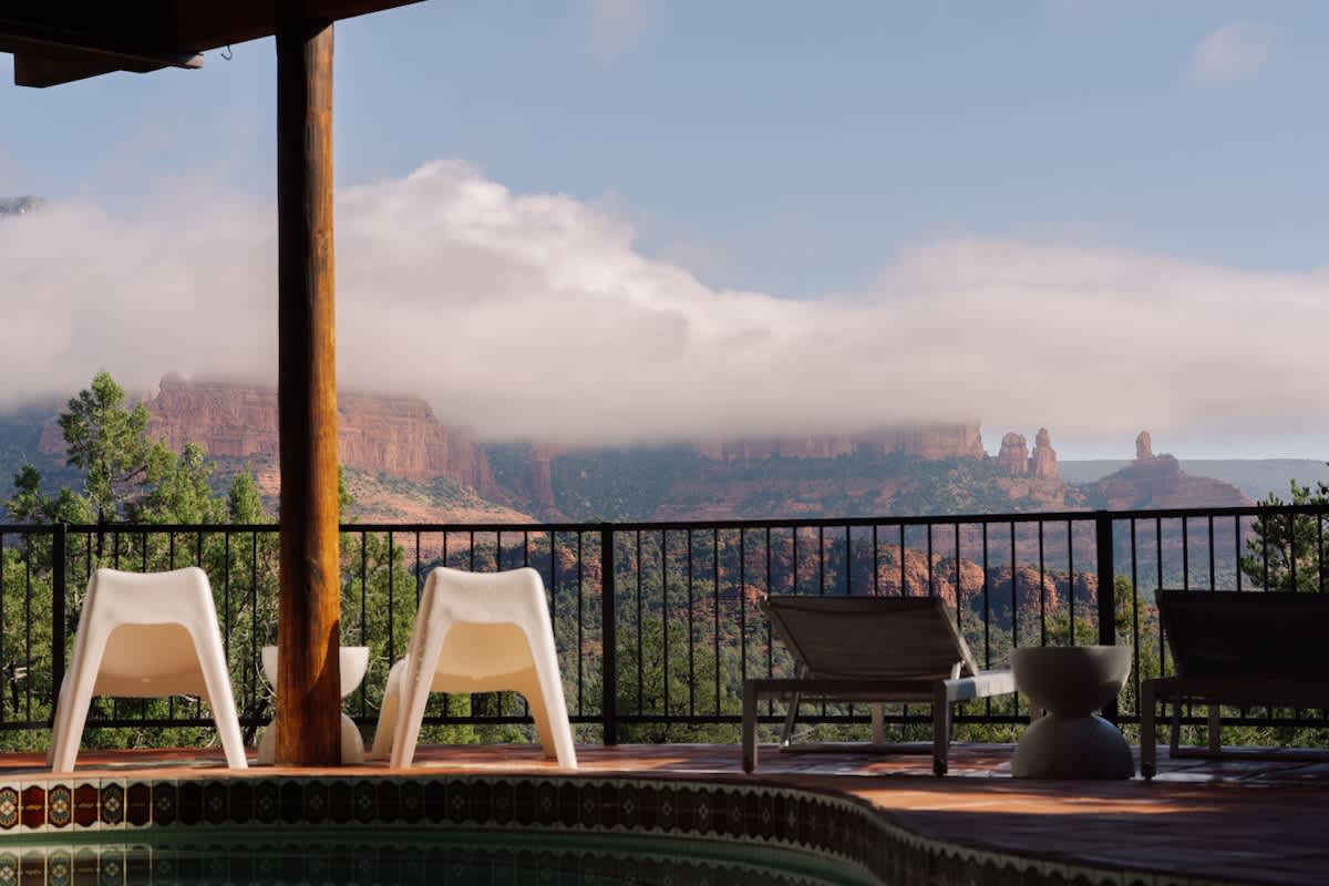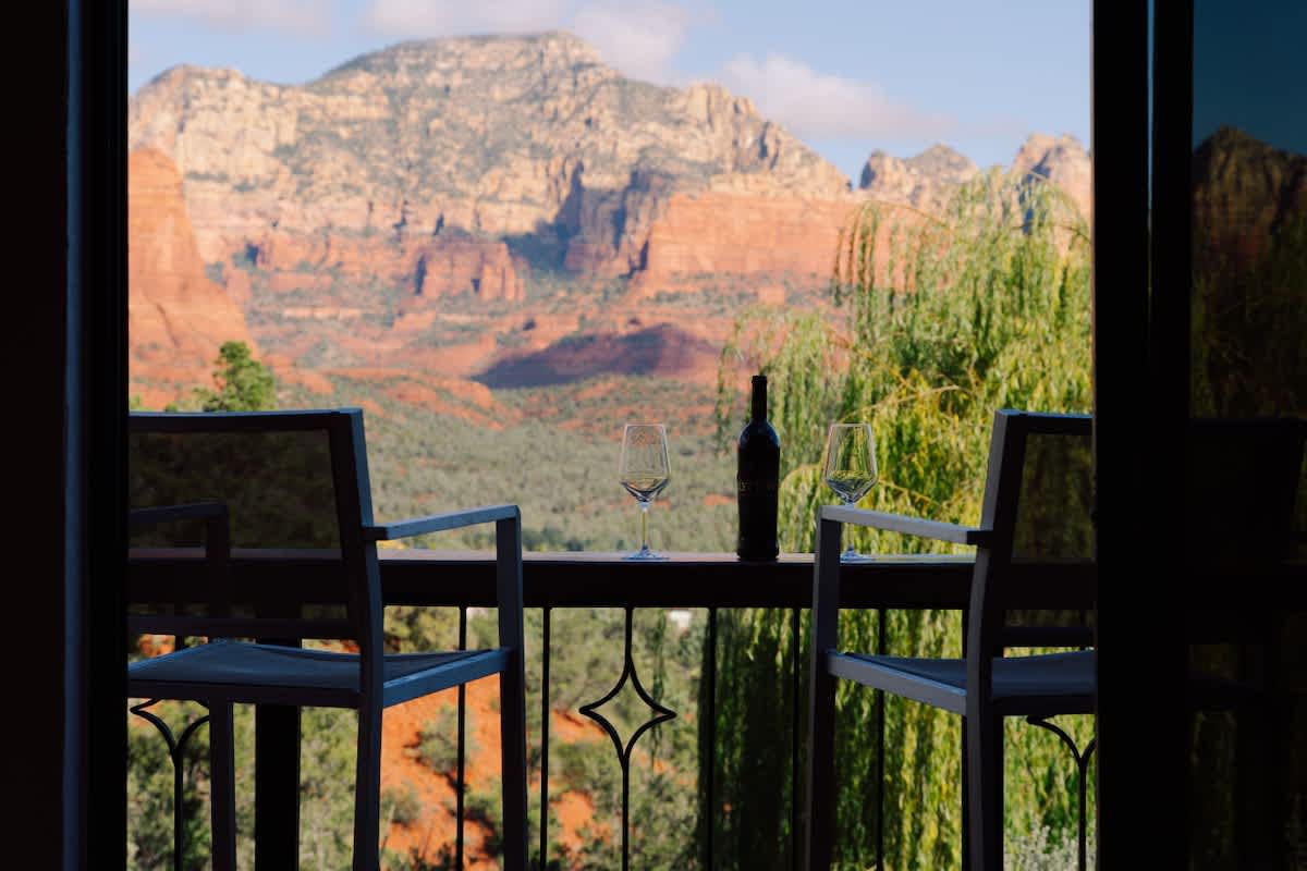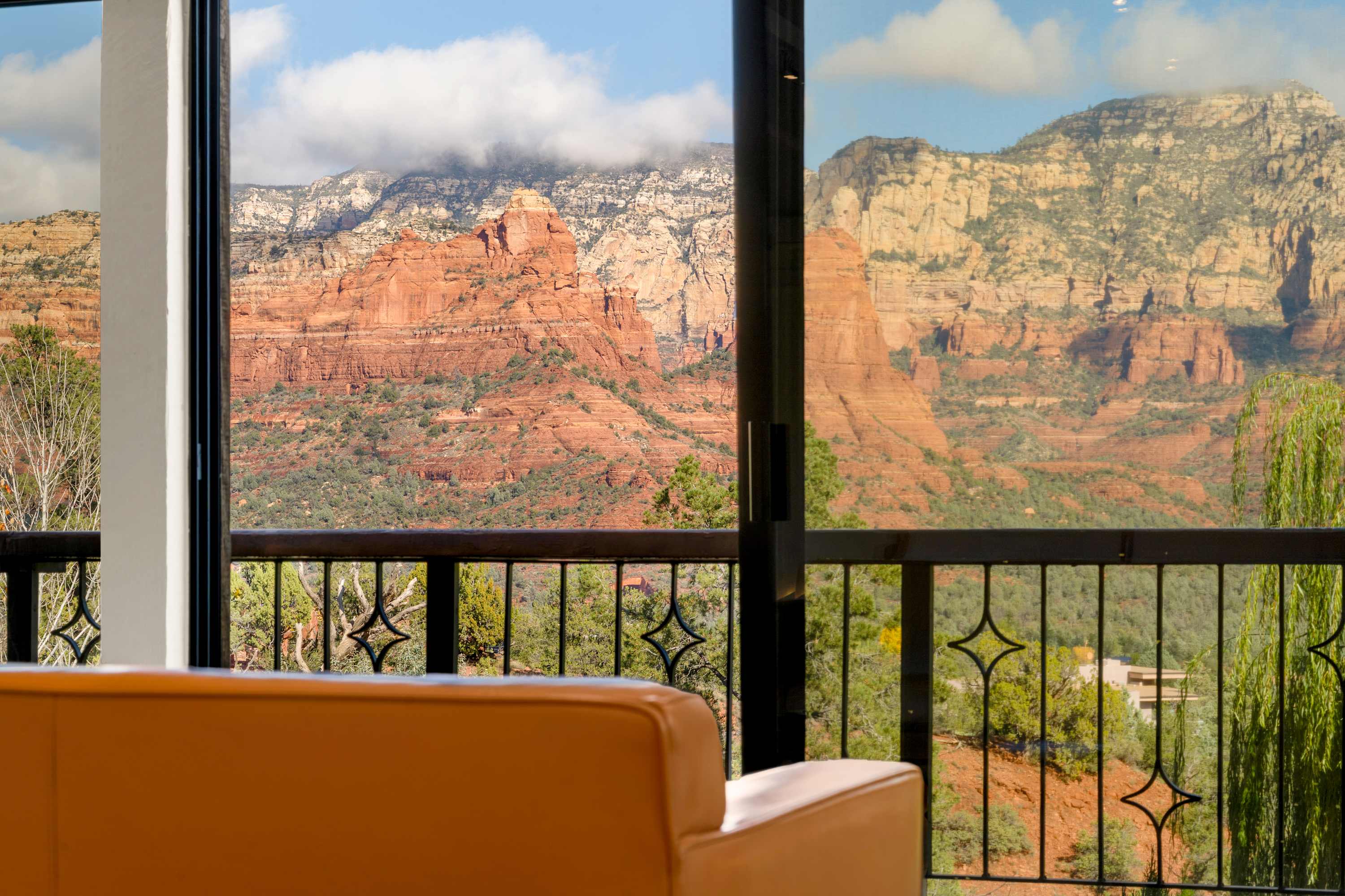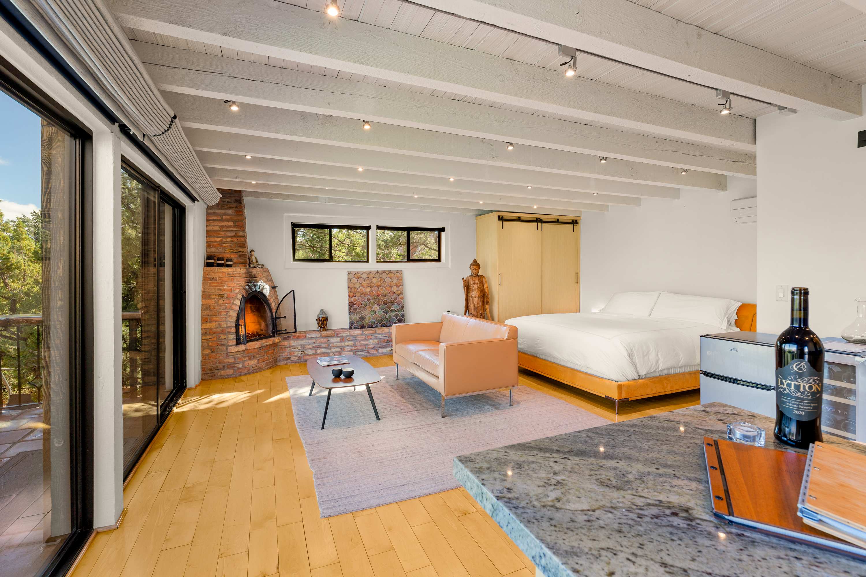 The Upper Casita at Eagle Dancer offers a rare stay within one of Sedona’s most iconic private estates, framed by sweeping red rock views. This elevated retreat features a private balcony, kiva fireplace, and seamless indoor-outdoor living designed for quiet luxury & connection.